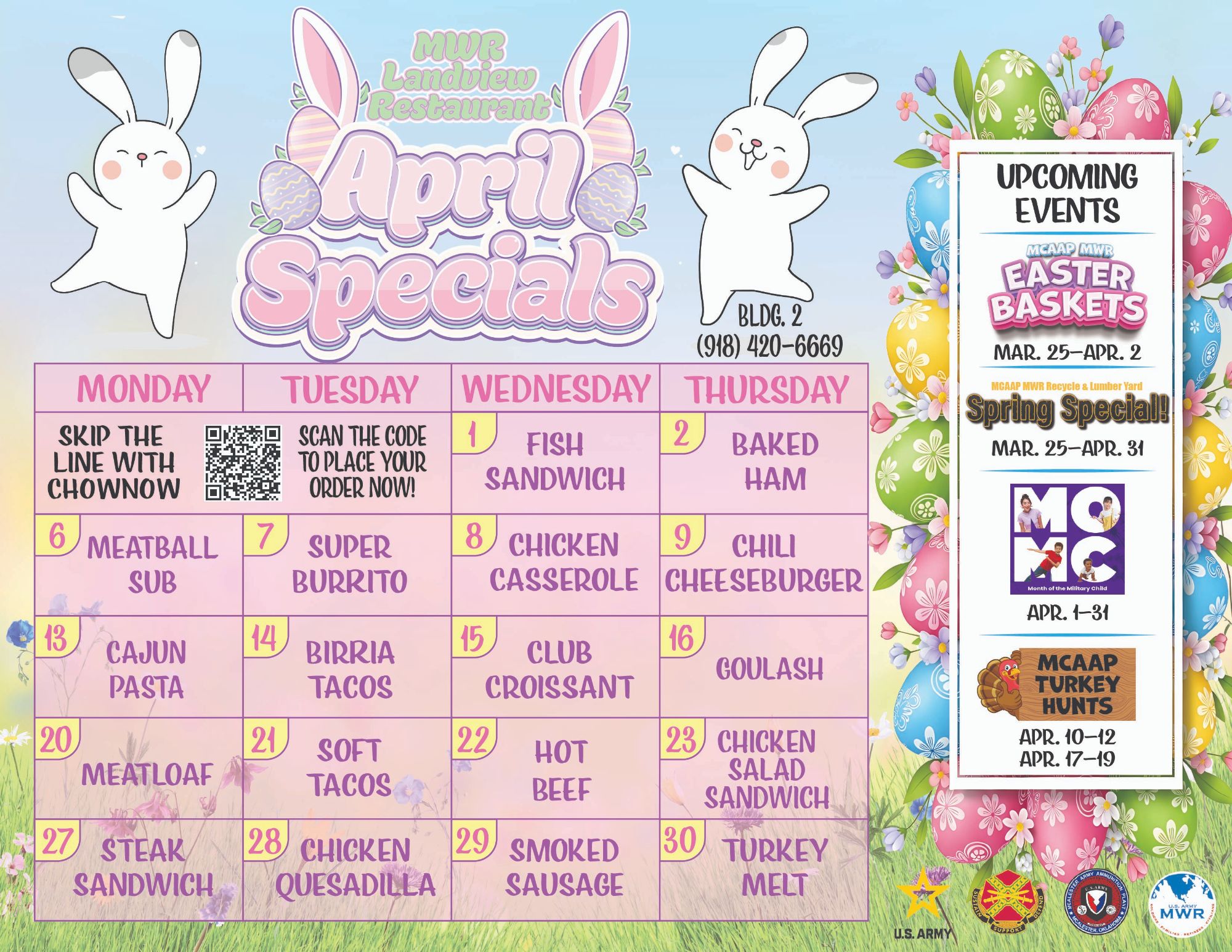 Don't forget to check out the upcoming MWR events like the MWR Easter Baskets and the MWR Recycle & Lumber Yard’s Spring Special!